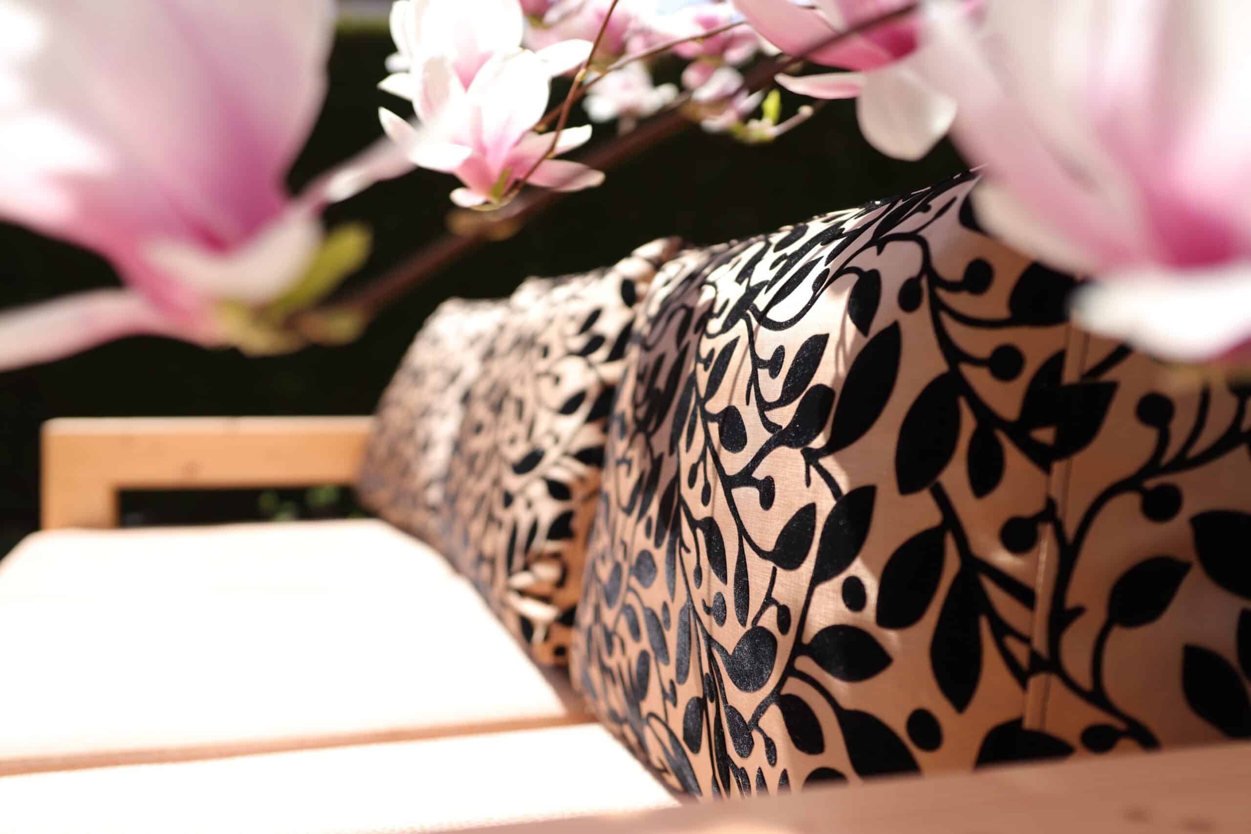 Vse zunanje pohištvo standardno obdelamo z vodnim lakom. Lak se nanaša v zelo tankom sloju in tako še vedno omogoča prijeten, naraven dotik lesa. Glede na vremenske razmere priporočamo, da vsako leto ocenite svoje pohištvo in ugotovite, ali je potrebna dodatna obdelava. Pohištvo je enostavno za uporabo in vzdrževanje brez grobega brušenja. Priporočamo tudi, da zunanjemu pohištvu priskrbite zaščitno ponjavo ali ga namestite pod streho. To zagotavlja, da se les stara počasneje in tako lepo ohrani svojo barvo.