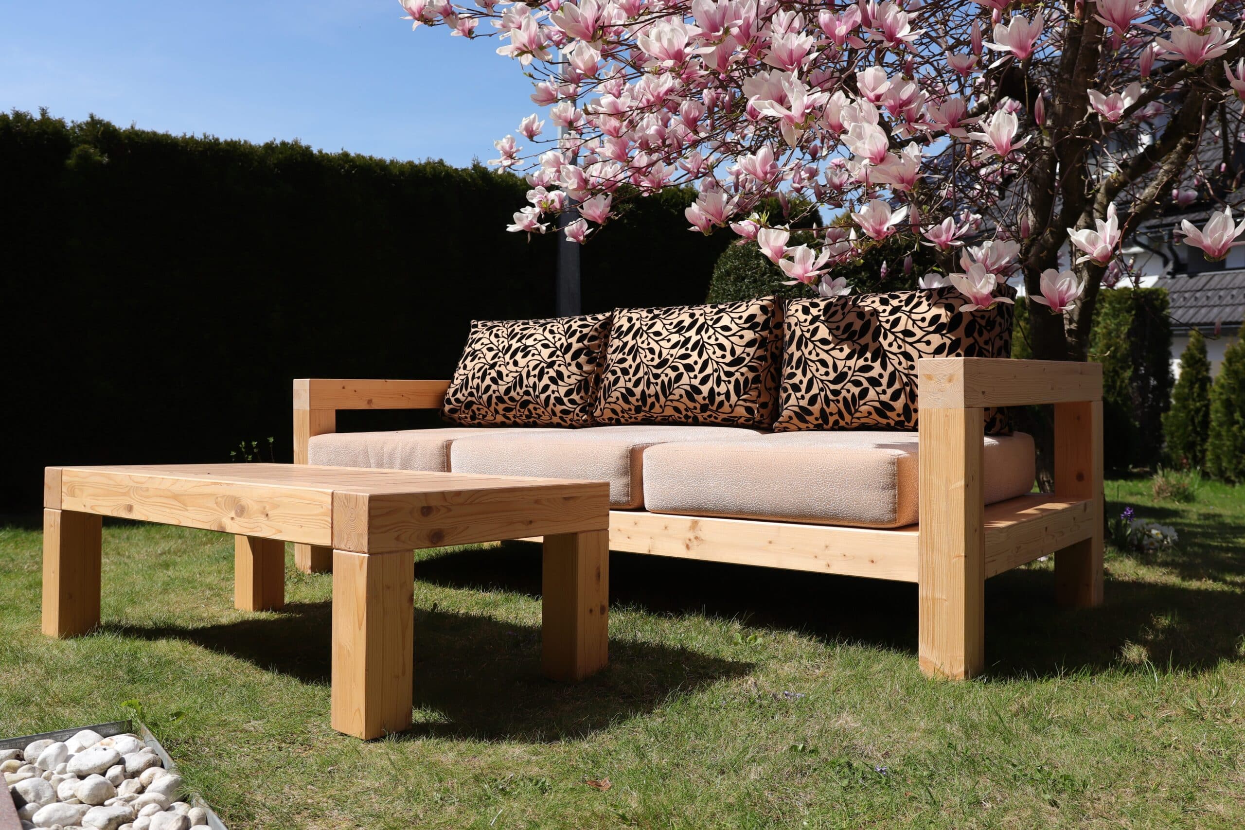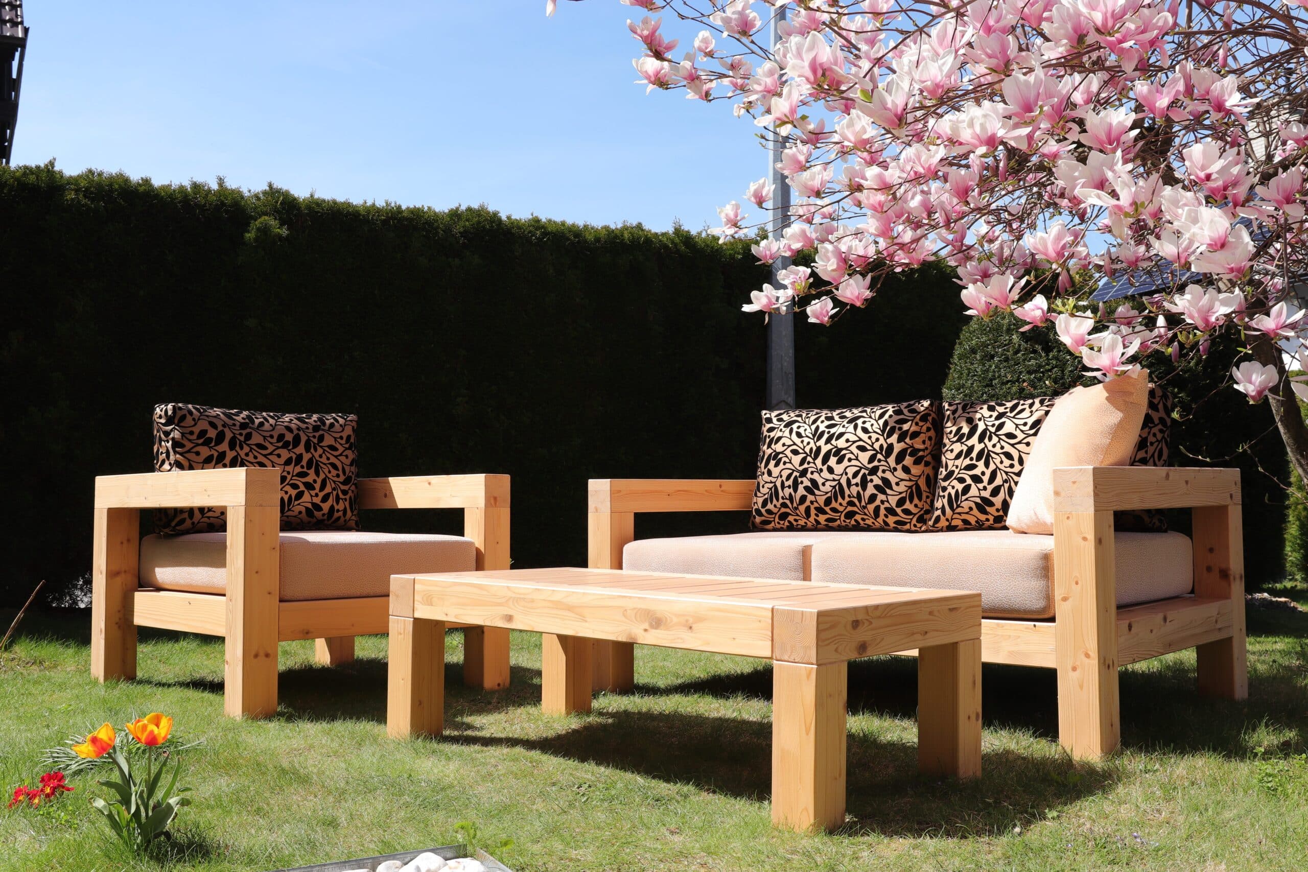 Lesena garnitura s svojo trdnostjo in toplino naravnega materiala dopolnjuje celoten ambient terasi. Občutek stabilnosti in naravne lepote lesa vas pomirja in daje občutek povezanosti z okoljem.